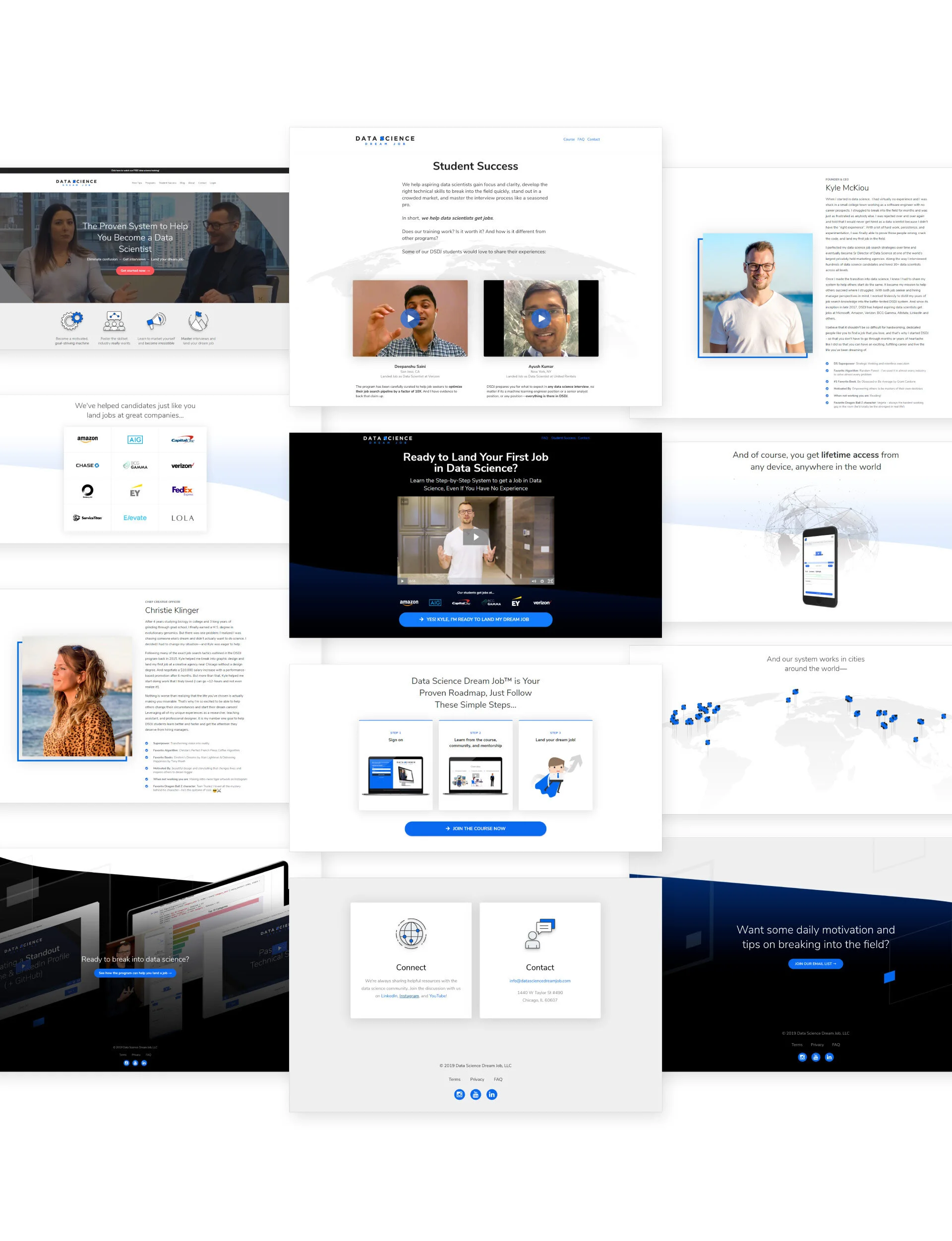 In 2018, I co-founded Data Science Dream Job, an interactive online career-training course, with Kyle McKiou. I designed the logo, website, course portal, worksheets, sales page, Instagram posts, Facebook ads, webinar graphics and did a majority of the photography and videography.
