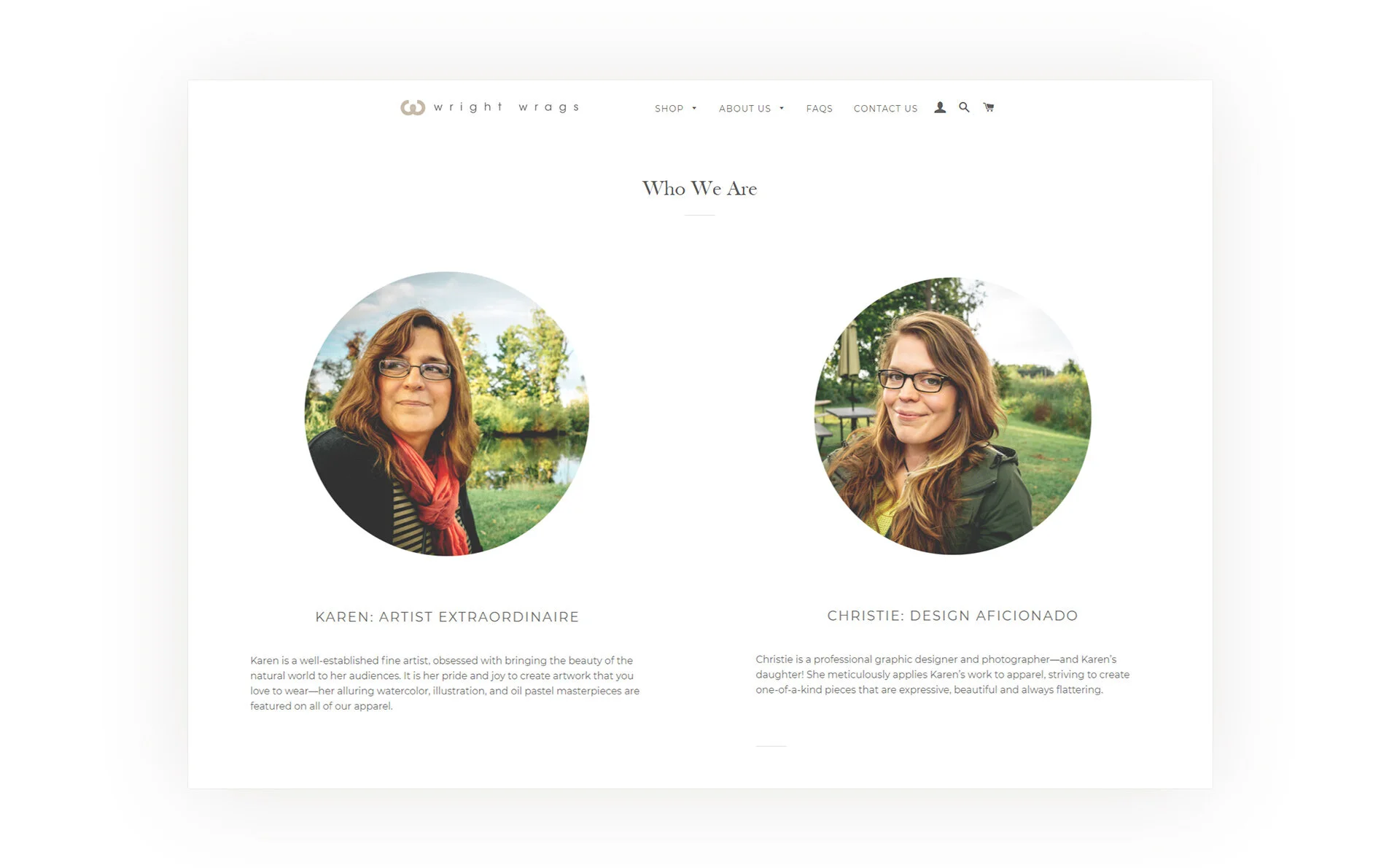 I co-founded the e-commerce clothing brand Wright Wrags with Karen Klinger (my mom!) and Kyle McKiou in 2017. I created apprarel designs featuring Karen’s original watercolor artwork, designed the website and Instagram content, and did the photography.